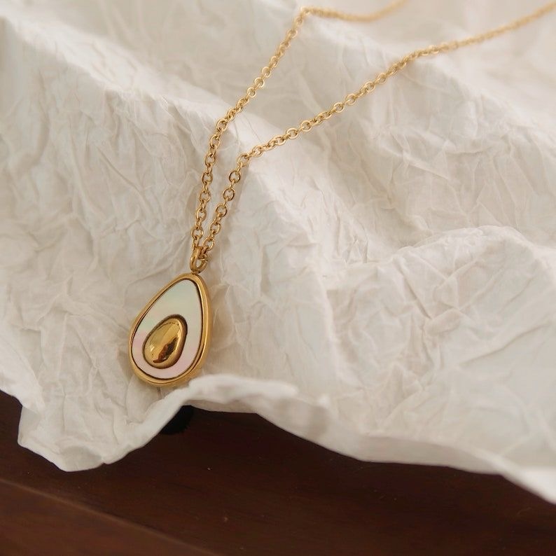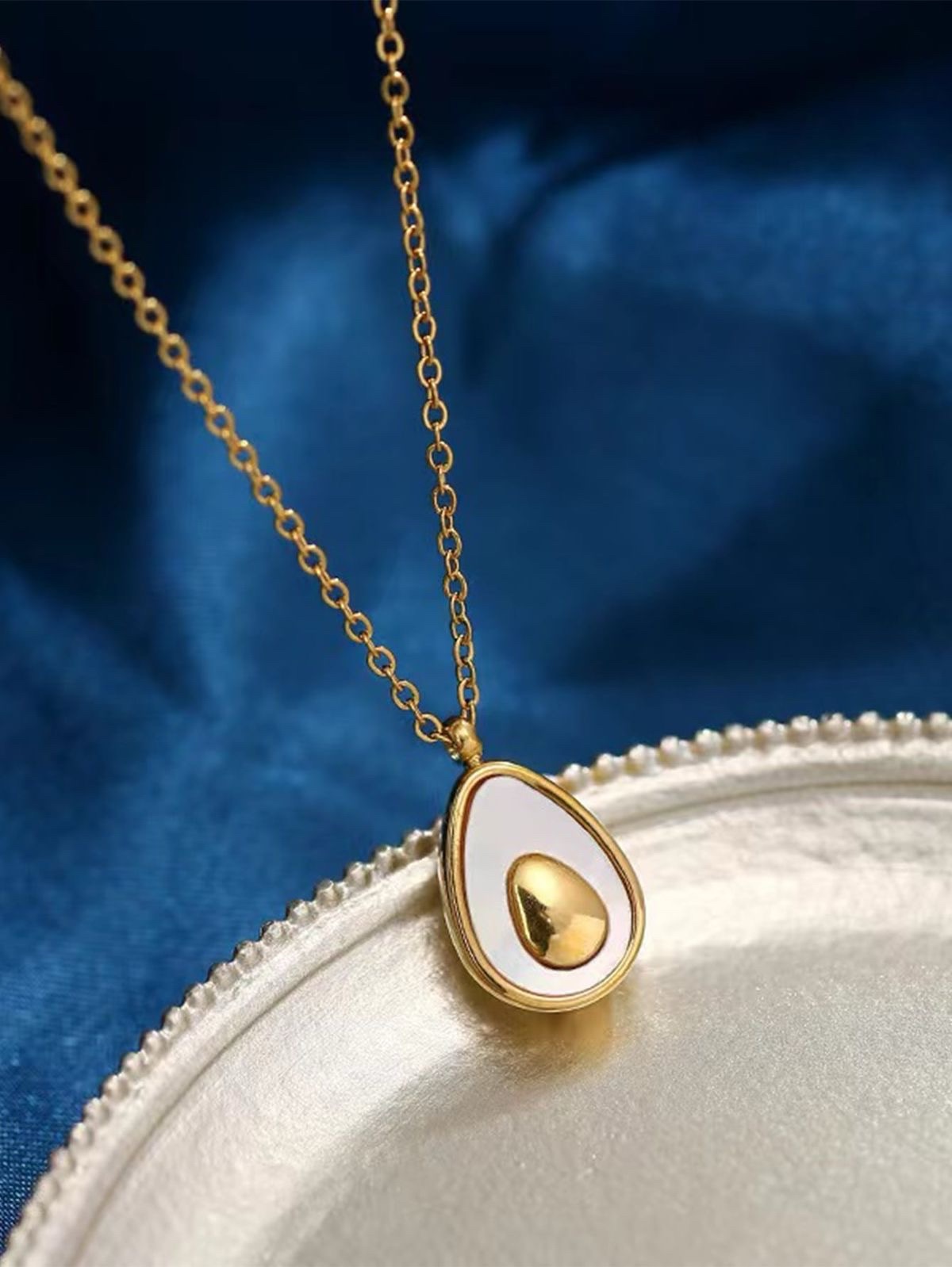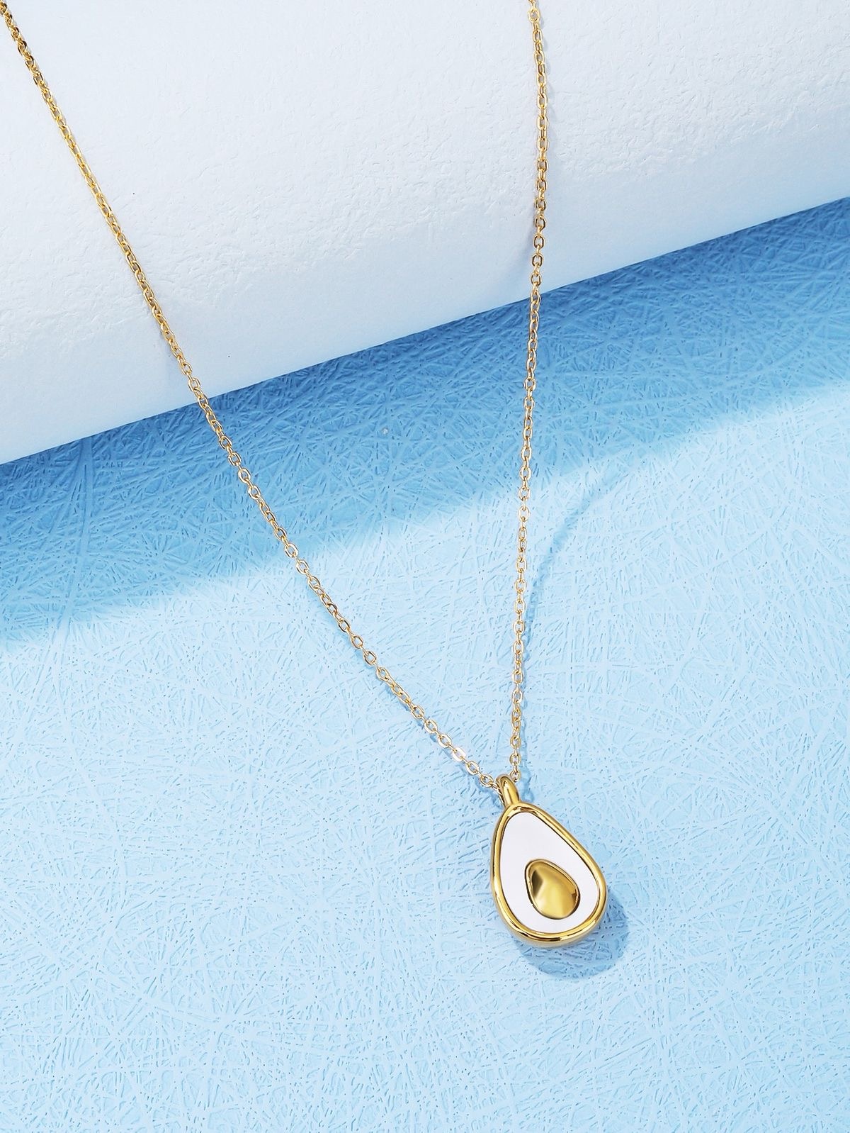 Bring a touch of fun and charm to your look with our Avocado Pendant Necklace — a perfect mix of minimal elegance and playful design. Crafted from 304 stainless steel and finished with luxurious 18K gold plating, this pendant is designed to stay shiny and tarnish-free for everyday wear.