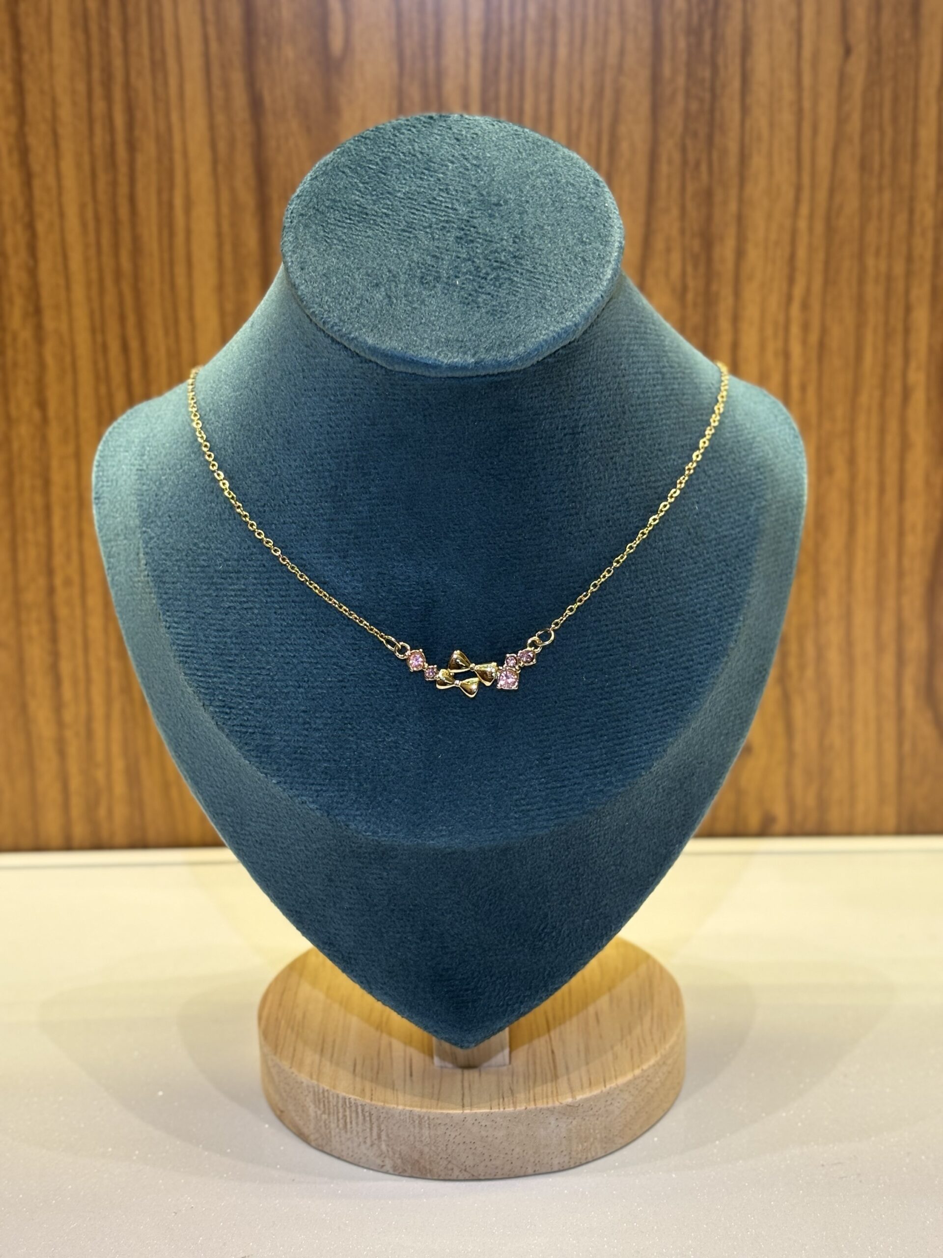 Elevate your everyday style with the Blush Bow Charm Necklace, a perfect blend of elegance and playfulness. Crafted from 304 stainless steel with a luxurious 18K gold plating, this necklace promises durability with a premium shine. The centerpiece features a dainty bow, adorned with pink cubic zirconia stones, adding a soft feminine touch.