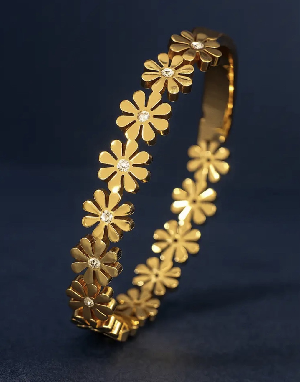 Beautiful daisy flowers all around with sparkling centers โ feminine and trendy.