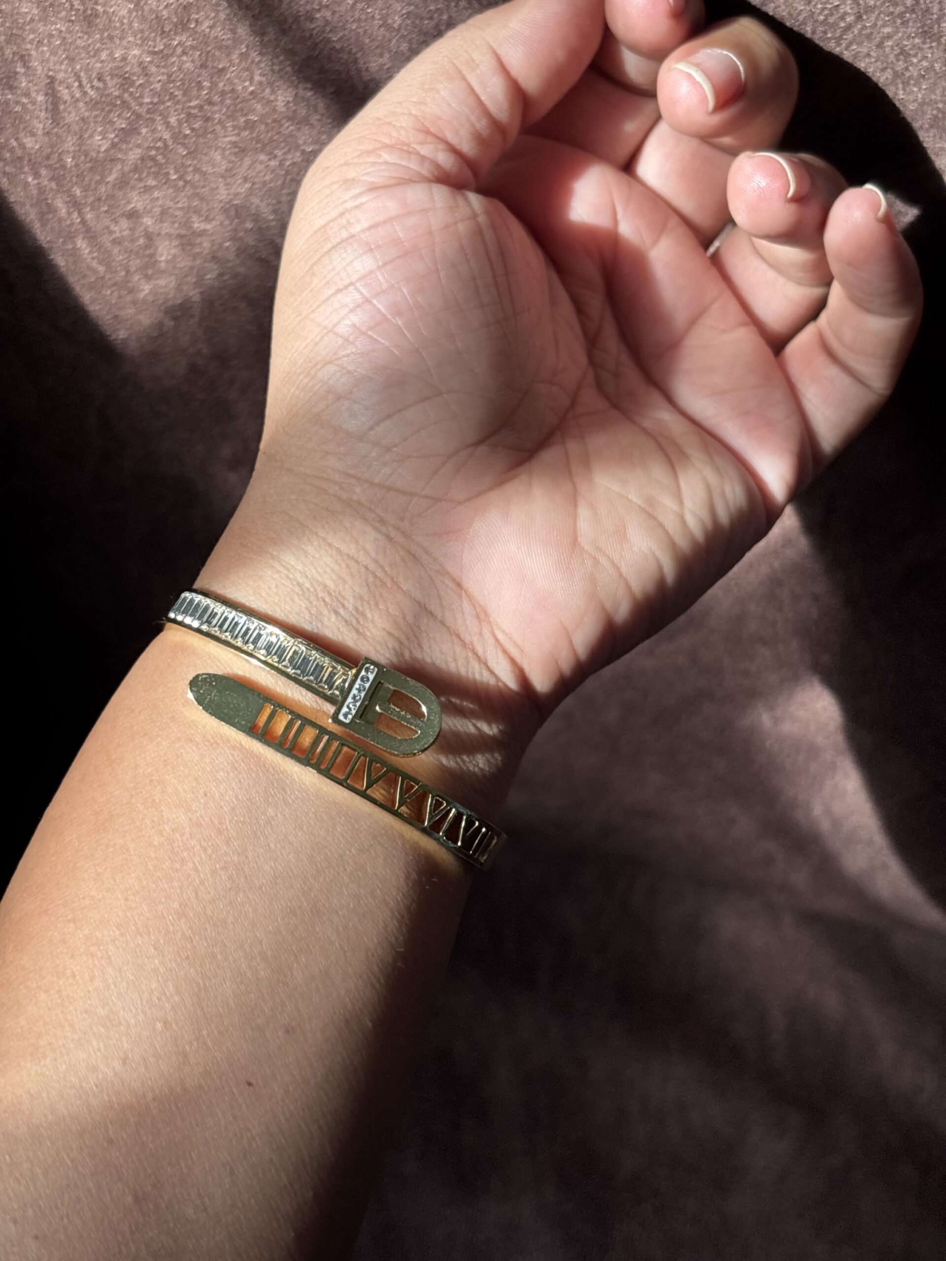 Inspired by the world of high fashion, the Milan Belt Bangle brings runway elegance straight to your everyday style. The sleek belt-style design paired with sparkling baguette stones creates the perfect balance of bold and feminine — making it a standout piece whether you’re dressing casual or going full glam.