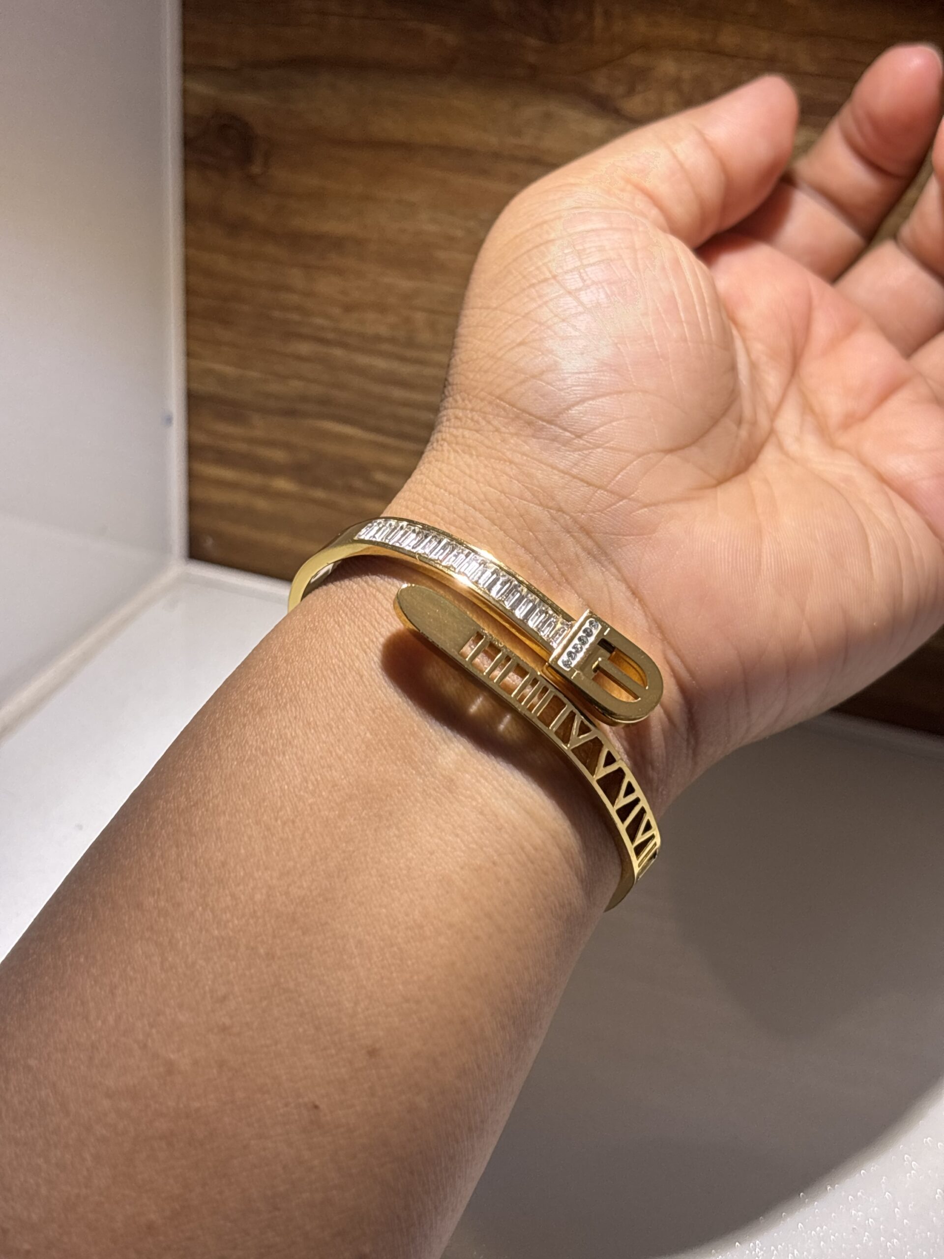 💫 Finish: Glossy gold with premium baguette stones