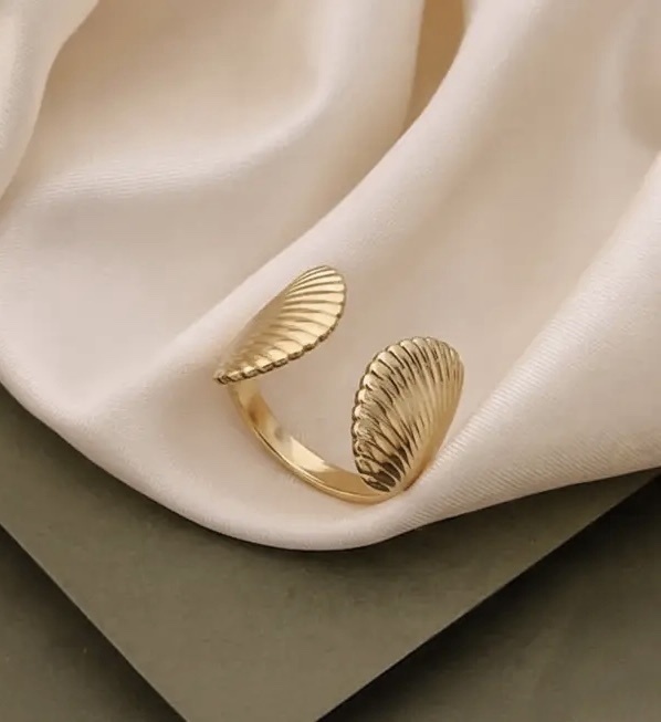 Inspired by the calm beauty of the ocean, the Seashell Open Ring features twin shell motifs that wrap gracefully around your finger. Its open design adds a modern touch while keeping the charm of coastal elegance alive.